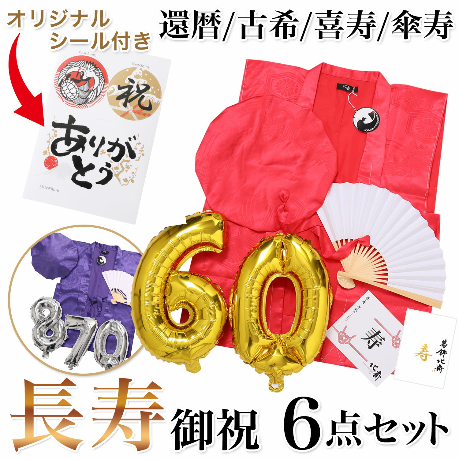 ちゃんちゃんこ 赤 紫 当店オリジナルシール付 バルーン 数字 長寿祝い 還暦祝い 敬老の日 古希 喜寿 傘寿 米寿 卒寿 帽子 扇子 数字バルーン 風船 プレゼント ギフト サプライズ パーティーグッズ 鶴亀 つるかめ 男性 女性 長寿 祖父 祖母