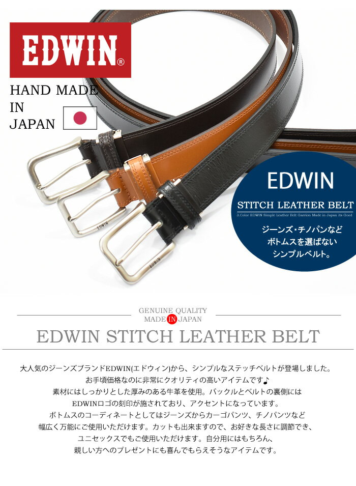 大人気のジーンズブランドEDWIN(エドウィン)から、シンプルなステッチベルトが登場しました。