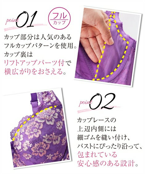 他のサイズは以下をご覧ください C70_M〜D80_L はこちら C85_L-LL〜D95_3L-4L はこちら G70_M〜H80_L はこちら E85_LL-3L〜F95_3L-4L はこちら G85_LL-3L/G90_3L-4L/G95_3L-4L はこちら脇高・総レースフルカップブラジャー・ショーツセット(3色レースは日本製)(トリンプ) ニッセン nissen ブルーベリー カラー ブルーベリー サイズ E70/M/E75/L/E80/L/F70/M/F75/L/F80/L 素材 品質=【ブラジャー】ナイロン・ポリエステル・その他【ショーツ】身生地:ポリエステル90%・ポリウレタン10%(ツーウェイトリコット) フルカップ ワイヤー入り サイドボーン入り 後ろホックは、CDカップのアンダー70〜80のみ2段3列、以外は3段3列 パッド・パッドポケットなし レースが多少異なる場合があります メーカー品番 ZZY4321E1412 コメント トリンプとニッセンの共同企画!日本製の3色レースが美しい華やかな脇高フルカップブラ&ショーツセット。