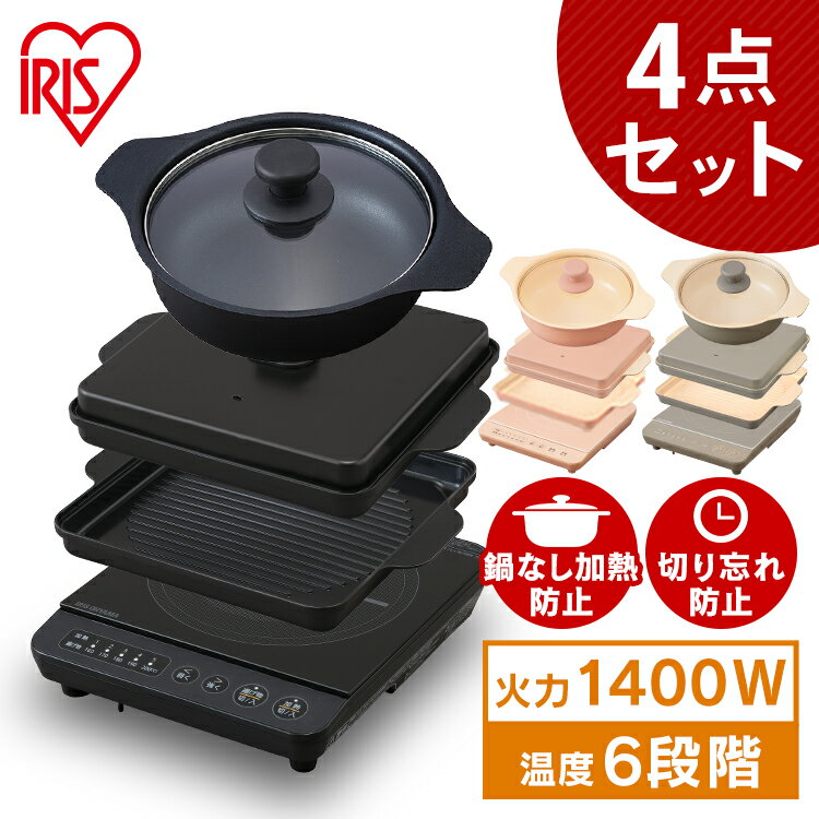 IHコンロ 1400W 焼き肉プレート 平面プレート 鍋セット IHK-T37 + IHKP-YP14 + IHKP-HP14 + IHKP-P24 ブラック ブラウン ピンク IHクッキングヒーター IHコンロ ホットプレート IH 1400W プレート 焼肉 平面 鍋 卓上コンロ アイリスオーヤマ あす楽