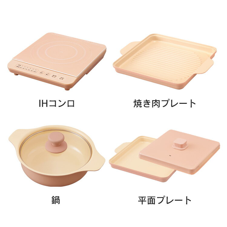 IHコンロ 1400W 焼き肉プレート 平面プレート 鍋セット IHK-T37 + IHKP-YP14 + IHKP-HP14 + IHKP-P24今すぐ使えるIHコンロ×焼き肉プレート×平面プレート×鍋の4点セット。