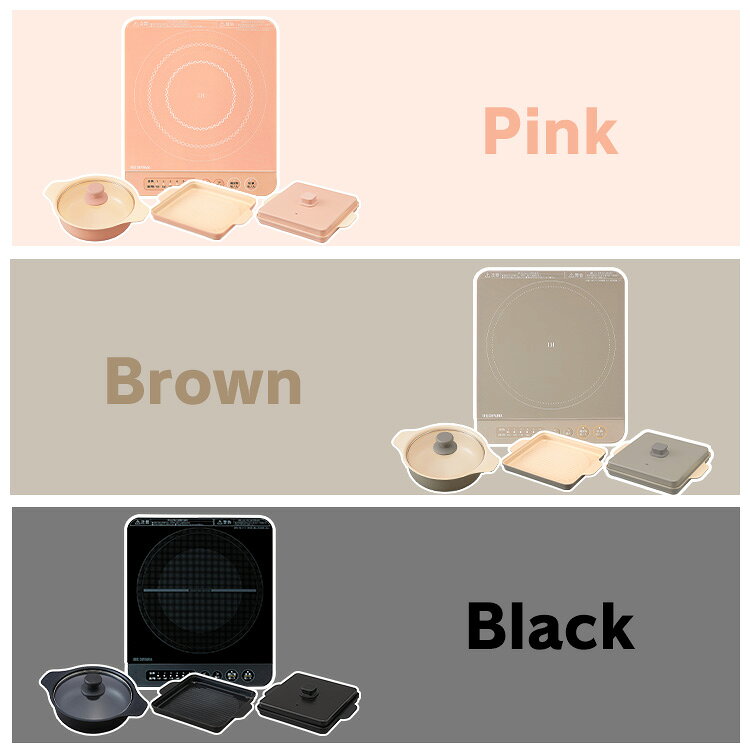 IHコンロ 1400W 焼き肉プレート 平面プレート 鍋セット IHK-T37 + IHKP-YP14 + IHKP-HP14 + IHKP-P24 ブラック ブラウン ピンク IHクッキングヒーター IHコンロ ホットプレート IH 1400W プレート 焼肉 平面 鍋 卓上コンロ アイリスオーヤマ あす楽