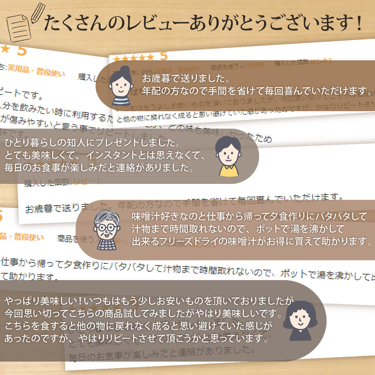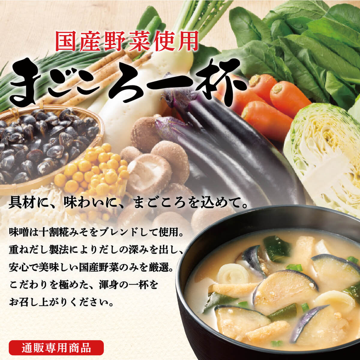 通販 限定商品 味噌汁の具 は 国産 野菜 のみを使用し 十割糀みそ をブレンドした 即席みそ汁 即席スープ まごころ一杯 詰め合わせセット みそ汁 は、 なす 5種の 野菜 長ねぎ ほうれん草 豚汁 しじみ なめこ 赤だし 小松菜 と 大根 ごぼう と れんこん 計9種で 種類が豊富。